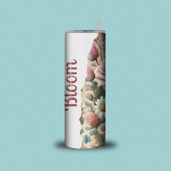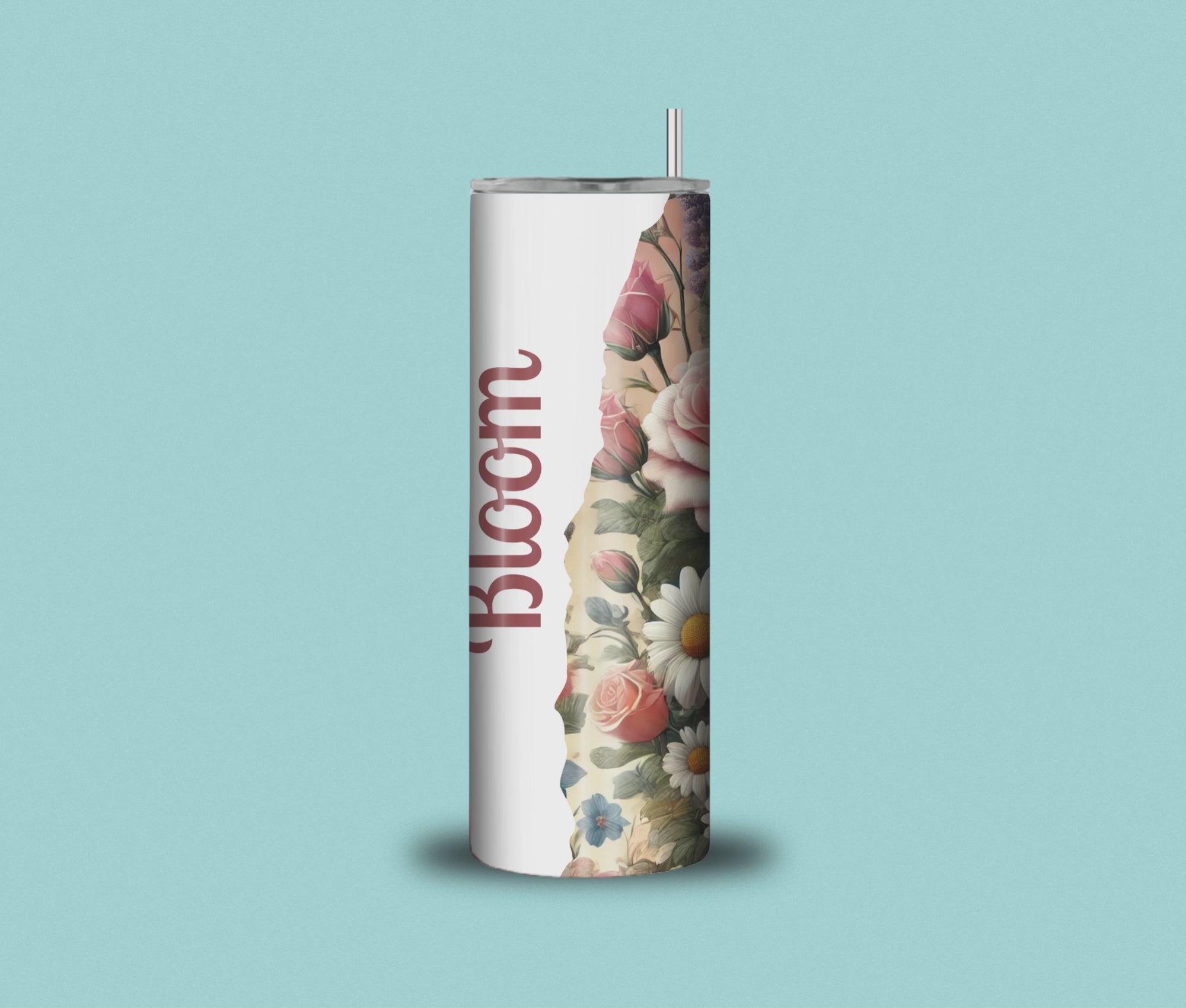 Bloom 20oz Skinny Tumbler – Christian Faith-Inspired Floral Tumbler with Cross Design